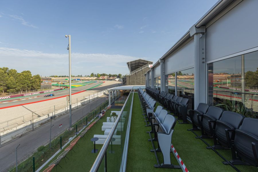 - Le Garden Club est stratégiquement situé dans le dernier virage du Circuit de Barcelona-Catalunya, à côté de la tribune Principale (couvert), offrant des vues privilégiées sur la piste.